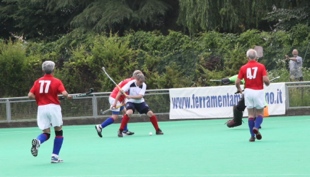 Scotland Over 65s were robbed of at least a draw in their last match, against Italy, and ended the tournament with no points and no goals. Morrice had turned a Bryce hit from a short corner into the Italian net with ten minutes left, and the officiating umpire had signalled a goal. No one, including the opposition, could explain the decision, prompted by the second umpire, to change the award to a sixteen yard hit. Scotland's misery was compounded when a loose ball was deflected past Black to give Italy an undeserved victory and leave Scotland with no points and no goals in the tournament.
