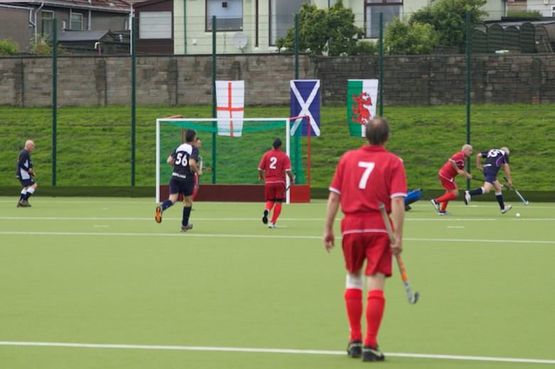 Caption: Gordon is well covered as he takes the ball into the English circle