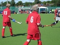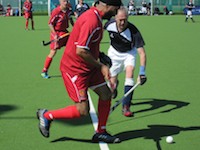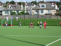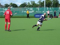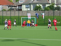 Ballard passes to Sheikh with Ballingall blocking his way into the Scottish circle