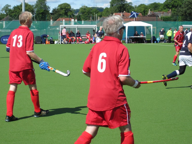 Caption: Hutchings and Major cover as Crichton chases the ball