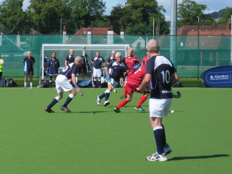 Caption: Perryman pulls the ball back to pass to Tranter with Ballingall and McIntosh closing in