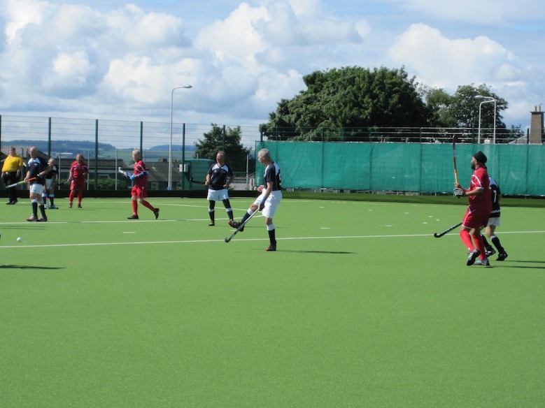 Caption: Ballingall pulls his foot out of the way of a Singh drive towards the English left