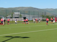 Frank Hardy of England turns Scots midfielder David Margerison inside out