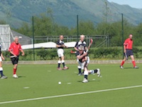 David Margerison puts all his weight behind a push as he sets up another Scottish move
