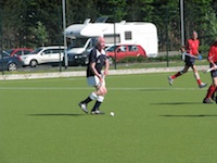 ... England have switched the ball and Ron Fraser sets up for the save, with Peter Ross ready to pounce for England