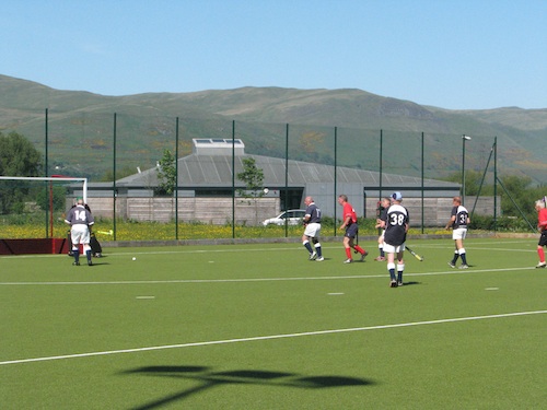 Caption: Scots keeper Ron Fraser preparing to save a shot from England