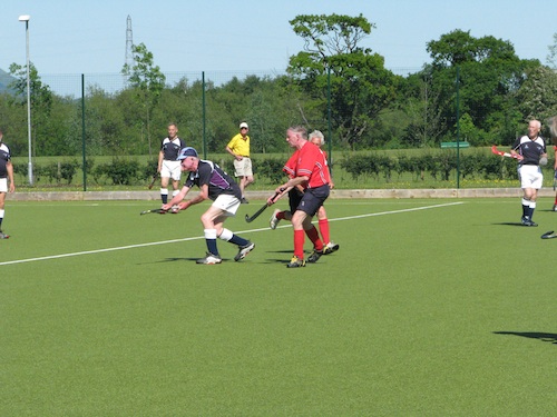 Caption: Howard Andrew lays the ball off with the way forward blocked