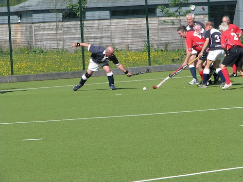 Caption: Captain David Cassell looks as if he is taking on the whole England team himself